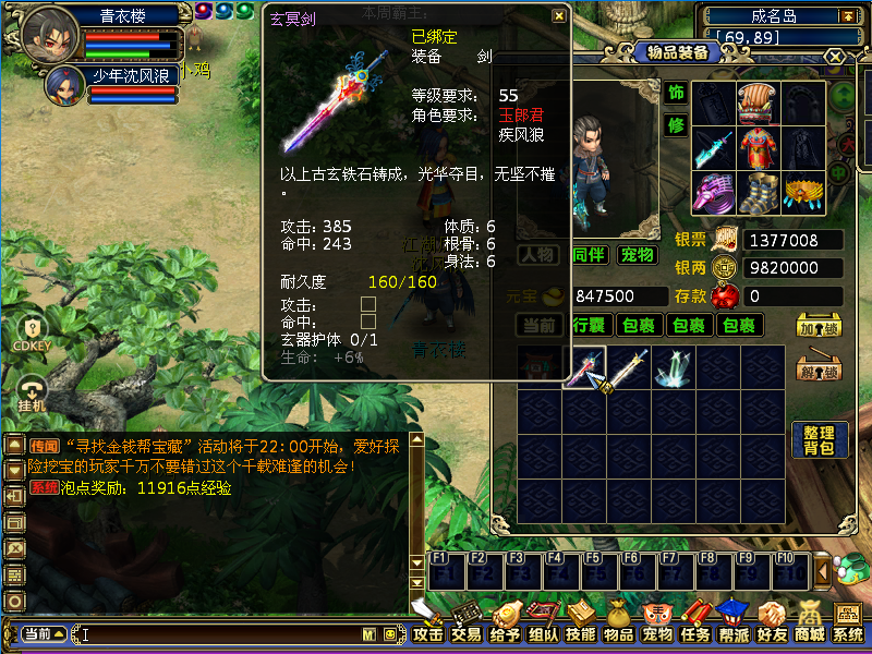 11. 增加55级随身锦囊领取少年风吹雪体验23小时。