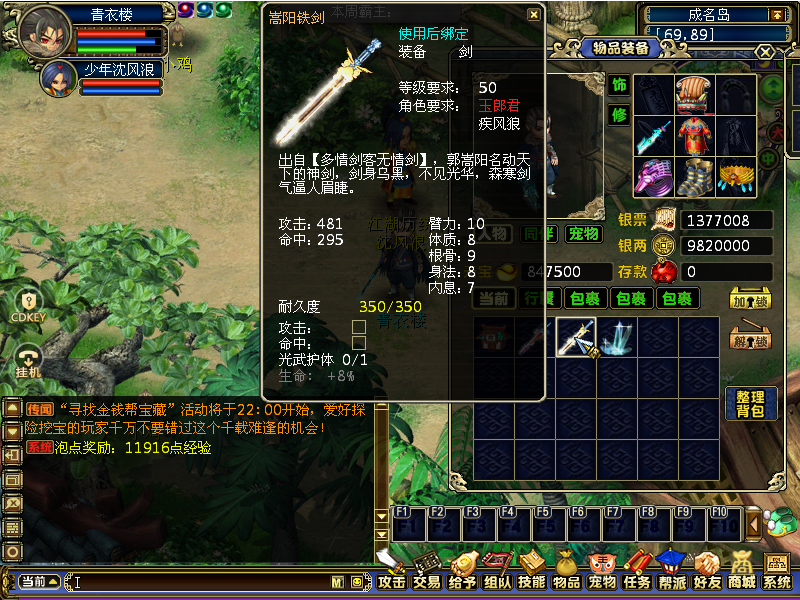 2. 适当调整神兵谱活动难度,增强兵器谱活动奖励,奖励中增加银两,通关后100%得少年卡一张,奖励丰厚。