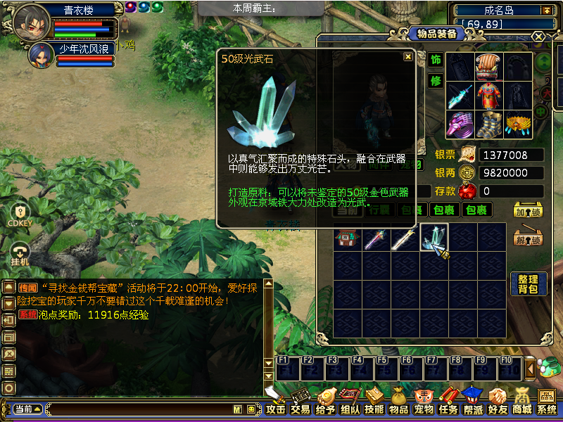 13. 光武修改为金色武器,金色武器+光武石可打造光武武器,金色光武武器增加生命加成。